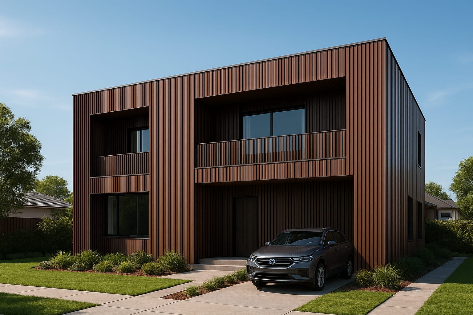 Our materials are versatile and suitable for facades, ceilings, walls, balconies, pergolas, gates, and partitions. They’re ideal for residential, commercial, and institutional projects looking for a modern, durable finish.